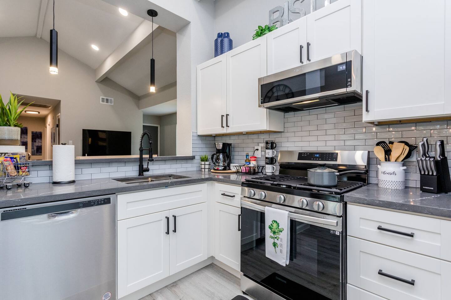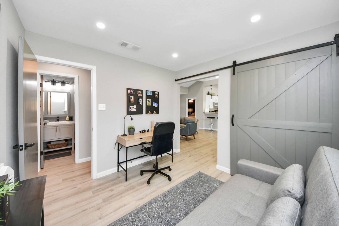 New to town? Visiting family or friends? Do you want a home away from home for you and your family so that you can relax in style? You've found it! This stunning home was renovated and staged by an award-winning designer to make your family's stay as comfortable and enjoyable as possible. The master bedroom has an inclining King bed. You can use the bonus room as an office, reading room, game room, or extra bedroom with its sleeper sofa. Shopping and restaurants are close by. Reserve Now!